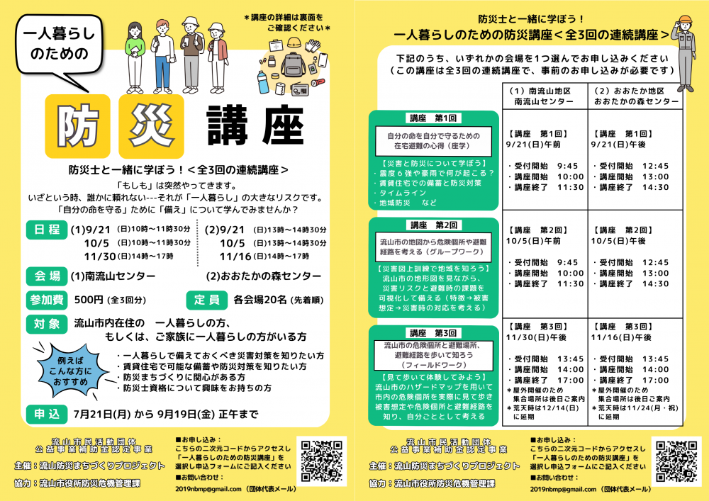流山防災まちづくりプロジェクト主催の講座のご案内です。 |